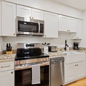 Our newly renovated one-bedroom FIRST TEE CONDO offers luxury and affordability with a king suite, queen sleeper sofa in the living area, fully-equipped kitchen and washer/dryer, all in walking distance to the club. This condo is ideal for visitors exploring the Great Smoky Mountains, outdoor enthusiasts or golfers looking for a mountain golf getaway. A two-night minimum stay is required; call us about discounted weekly or monthly stays, 828-452-0545.