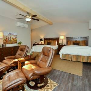 Golf packages include on-site accommodations available year-round and a special guest golf rate. Visitors enjoy their choice of four newly renovated rooms conveniently located on the #1 tee adjacent to the beautiful Laurel Ridge Grand Lodge and amenities. Each room features two luxury queen beds, modern furnishings, new flat screen televisions, Wifi, a Keurig coffee maker and refrigerator.